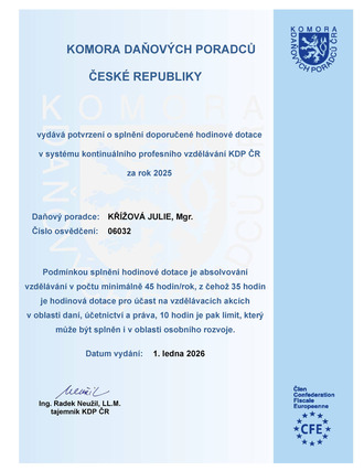 Komora daňových poradců eviduje daňové poradce a daňově poradenské společnosti v seznamu, zveřejňuje jejich adresy, kontaktní údaje a účast daňových poradců v kontinuálním profesním vzdělávání. Ostatní údaje si v seznamu spravují samotní poradci a poradenské společnosti.
