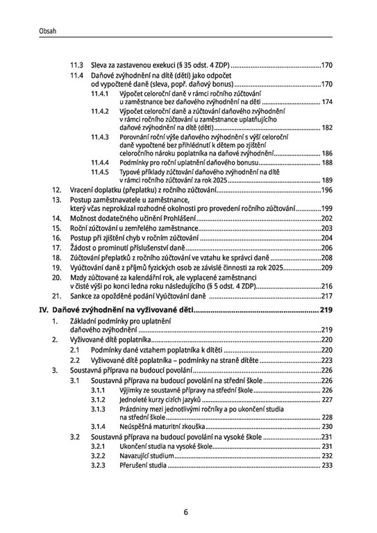 - zcela novou rozsáhlou kapitolu, k daňovému zvýhodnění na děti, včetně úpravy podmínek soustavné přípravy na budoucí povolání od 1. 10. 2025 – srozumitelně vysvětleno, kdy lze daňové výhody uplatnit a jaké doklady zaměstnavatel musí požadovat;