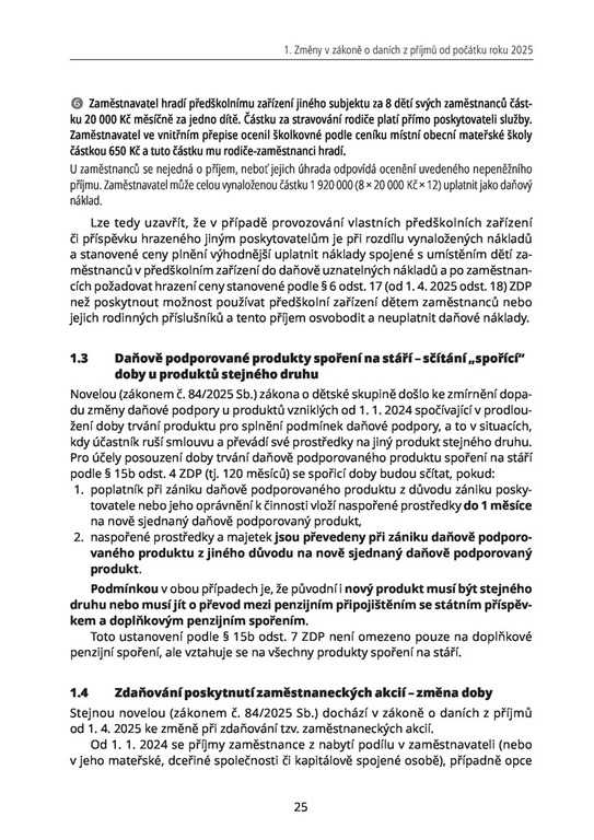 - aktuální pravidla pro produkty spoření na stáří – podmínky pro jejich uplatnění jako nezdanitelné částky, zpřesnění pravidel v roce 2025;
