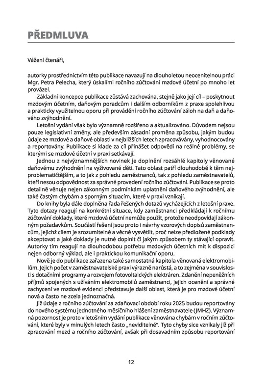 - kapitolu dotazy z praxe, obsahující více než 70 konkrétních problémů, které autorky během roku 2025 řešily přímo se mzdovými účetními – otázky a odpovědi k nejčastějším tématům, se kterými se lze setkat v každodenní praxi;